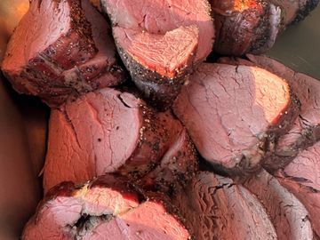 Slow Roasted Beef Tenderloin Sliced and Served to Order.